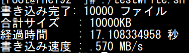 1kbファイル1万個の書き込み速度の測定(/tmp/testwriteディレクトリを作成しておく)