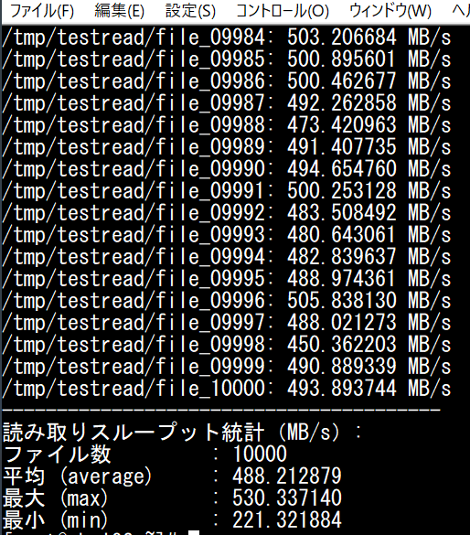 echo "各ファイルの読み取りスループット:"