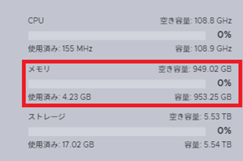 47.6625GBが増えたことになります(物理メモリの25%増)
