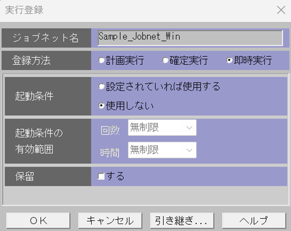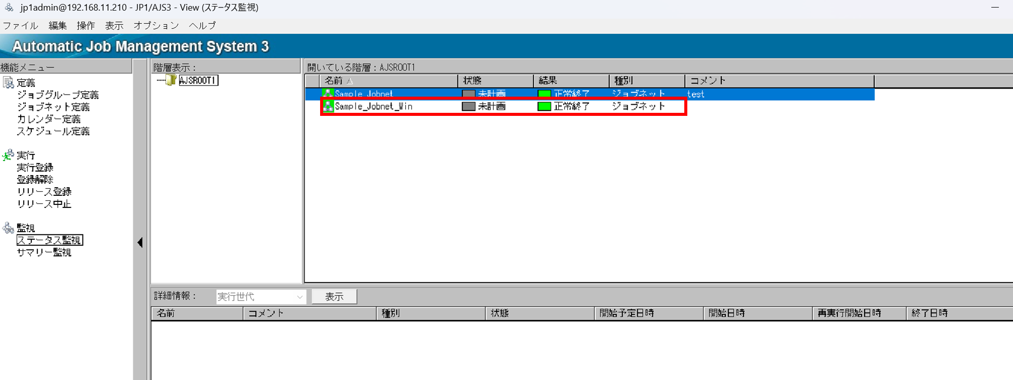 Windows実行エージェントのインストールと設定の前にここまでで、ジョブスケジューラの動作確認テストを実施します